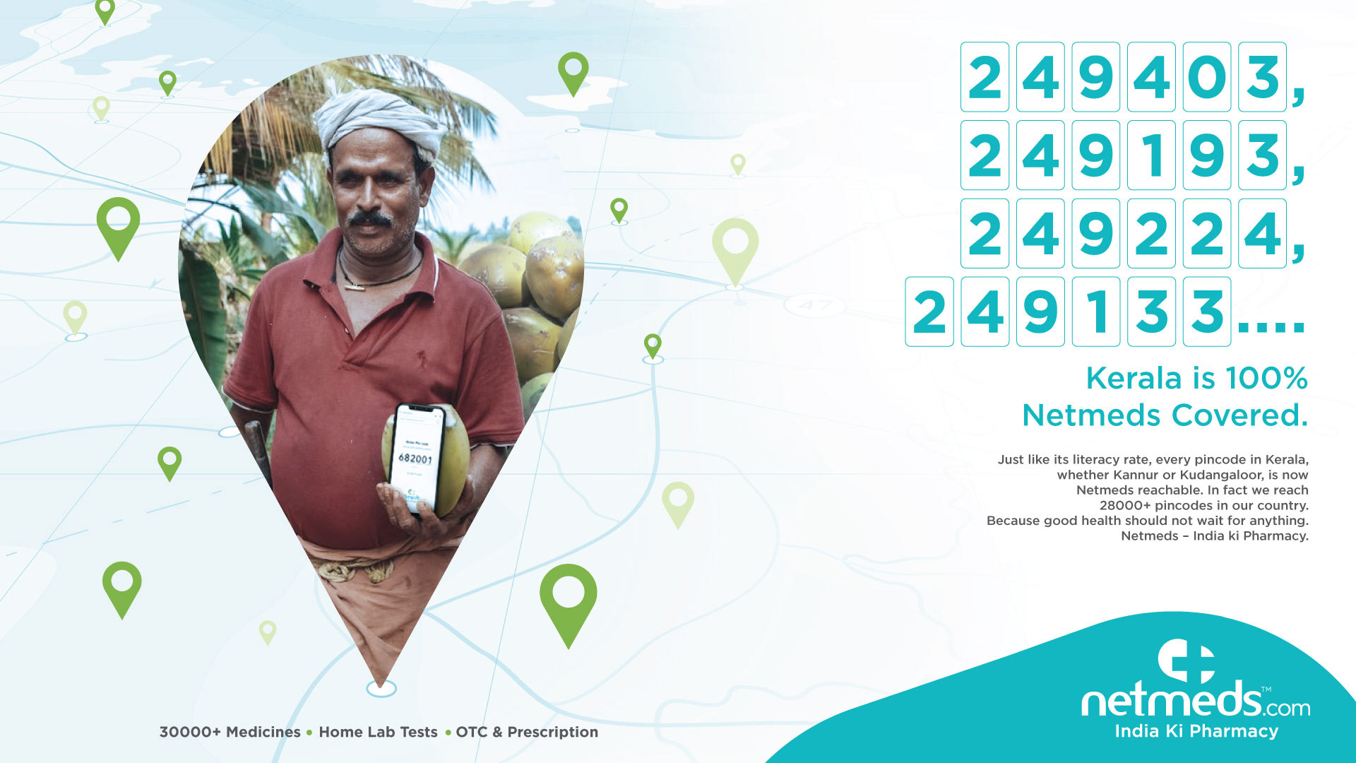 Translation: From 305001 to 333002, in every pincode of Rajasthan, medicine is delivered only through Netmeds.
