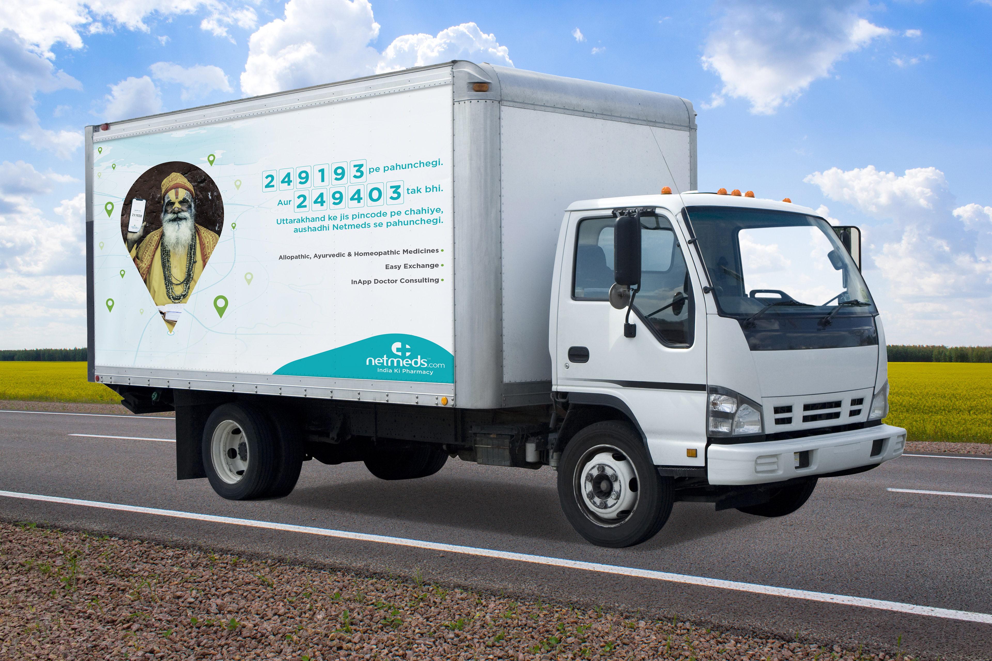 Translation: It will reach 249193. And also 249403. The medicine will be delivered to the pincode of Uttarakhand where you need it, through Netmeds.